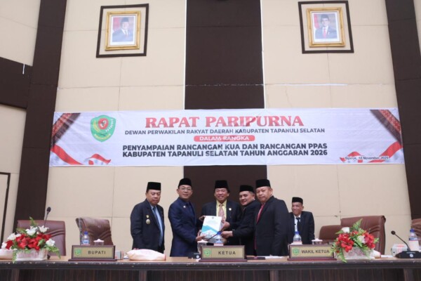 KompasReal.com, Tapanuli Selatan – Bupati Tapanuli Selatan (Tapsel) H. Gus Irawan Pasaribu menyampaikan Rancangan Kebijakan Umum Anggaran (KUA) dan Prioritas Plafon Anggaran Sementara (PPAS) Tahun Anggaran 2026 pada rapat paripurna DPRD Tapsel, Senin (10/11/ 2025) di gedung dewan, Jalan Prof. Lafran Pane, Sipirok.